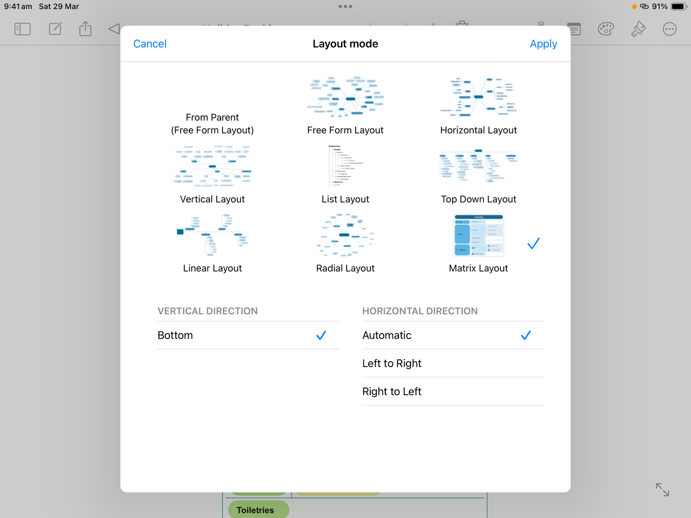 What I really like about this app that I decided to buy it is its customisation options and design choices available. And lots of different usability features like a list of all your branches, colours per level, several types of layouts for different purposes, emoji tagging, plus it’s easy to link nodes together or re-arrange them.