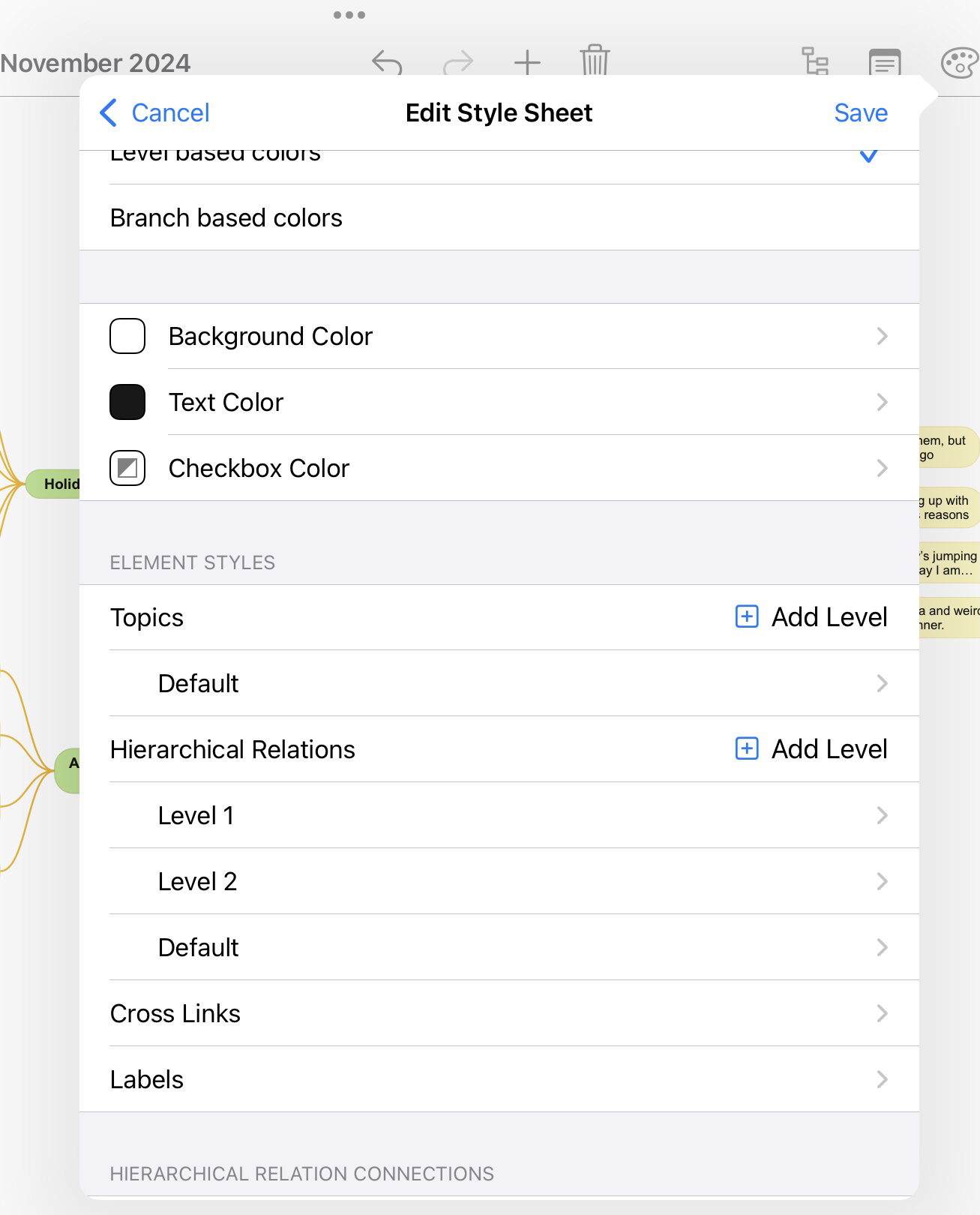 I’m impressed with SimpleMind’s customisation options for a layout, like colours and hierarchy styles. So far, I haven’t customised the hierarchy levels yet, but I’m glad you can if you wanted too.