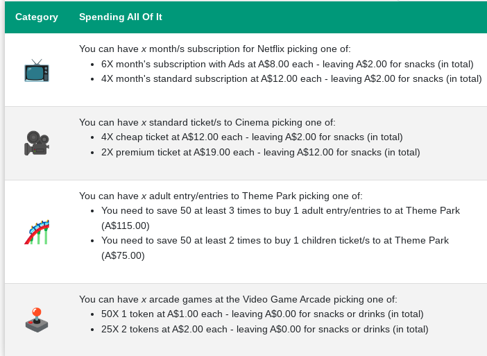 Whichever way you want to use this tool, have fun thinking about your spending choices.